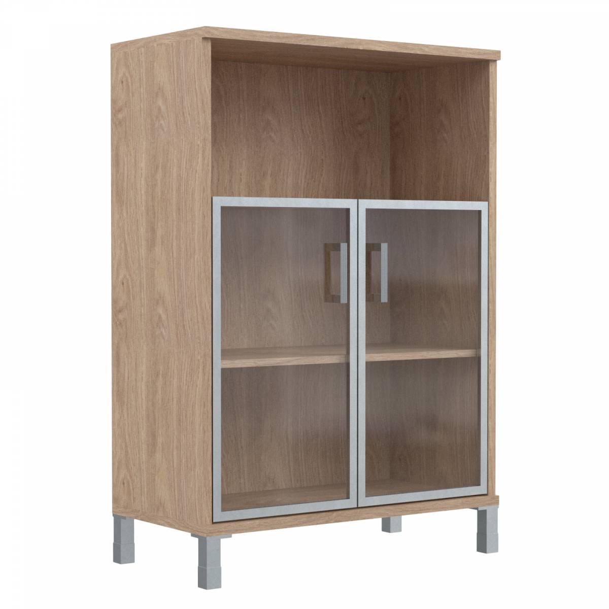 Шкаф средний с малыми стеклянными дверьми в AL-рамке B 420.4 Дуб Девон 900х450х1286