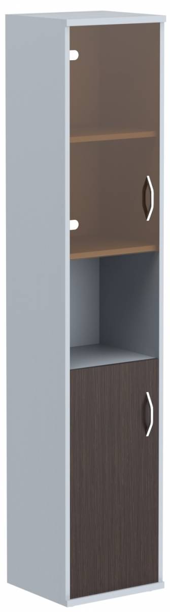 Шкаф колонка с малой глухой и стеклянной дверьми СУ-1.4(R) Венге Магия/Металлик 406*365*1975